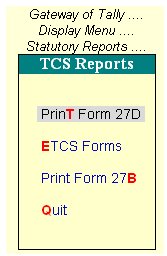 Form 27D , Form 27B, ETCS Form can be printed from Tally.ERP.